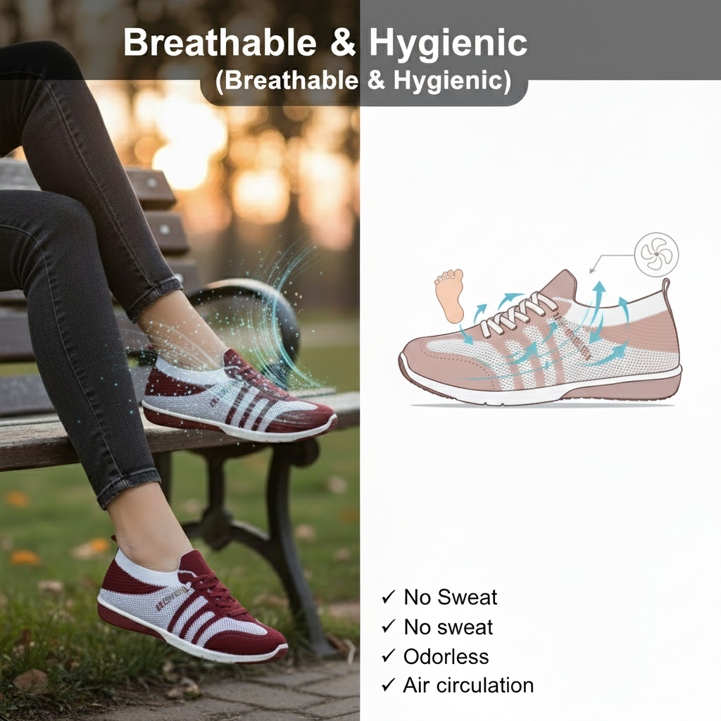 এর ব্রেথেবল প্রিমিয়াম নিট ফ্যাব্রিক পায়ের ভেতরে বাতাস চলাচল বজায় রাখে। ফলে গরমের দিনেও পা অতিরিক্ত ঘামে না, অস্বস্তি হয় না এবং দুর্গন্ধ সৃষ্টি হওয়ার সুযোগ কম থাকে। দীর্ঘ সময় ব্যবহারের জন্য এটি একদম পারফেক্ট।